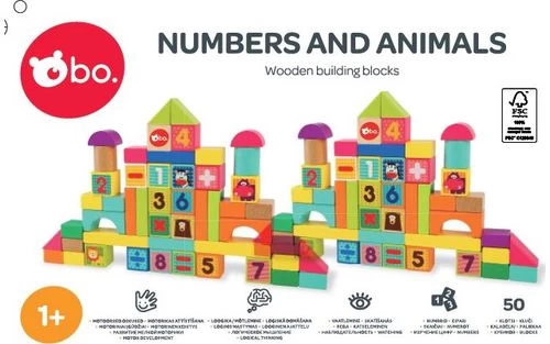 bo. Medinės kaladėlės „Skaičiai ir gyvūnai“
