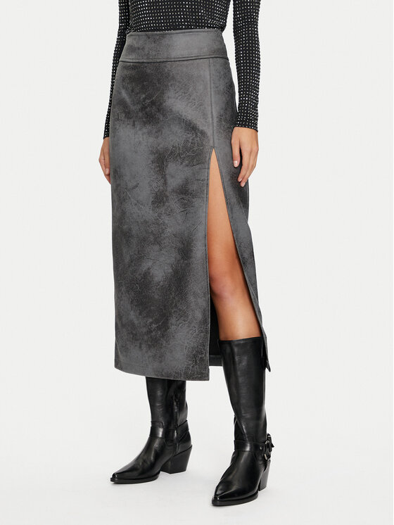 ONLY Dirbtinės odos sijonas · Pilka · Midi